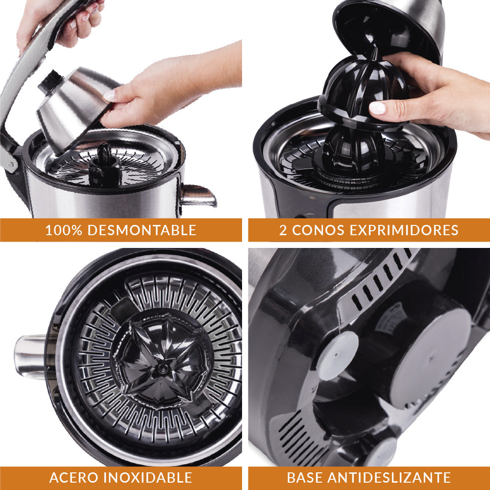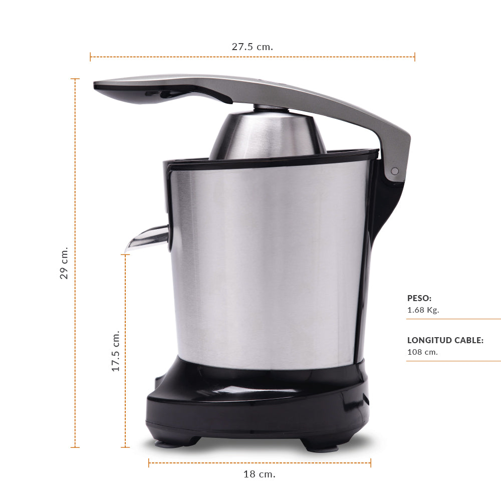 Este nuevo exprimidor cuenta con una palanca de presión, con ella conseguimos exprimir nuestras frutas al máximo, fácil y sencillo.